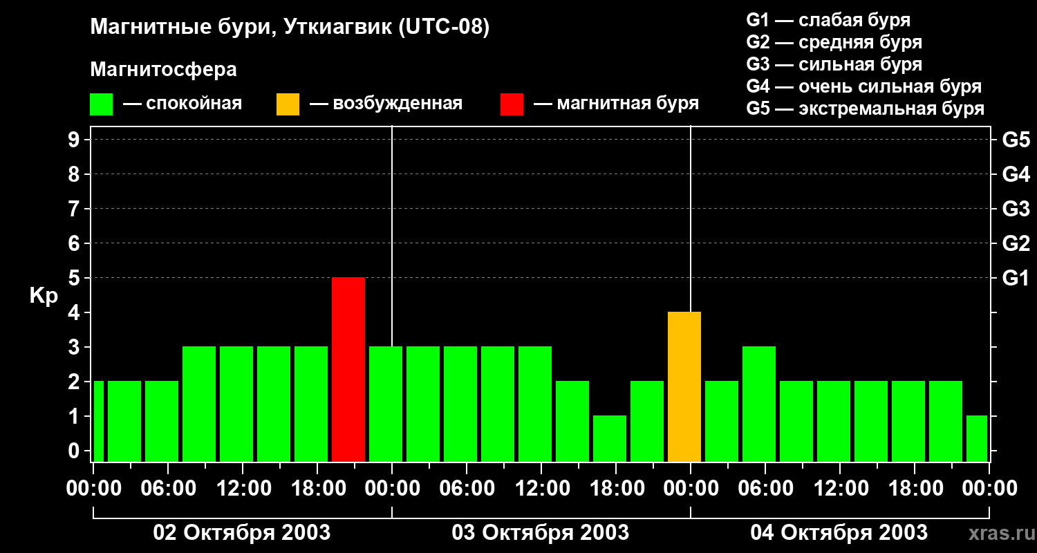 Магнитные бури в Уткиагвике — 4 октября 2003 года