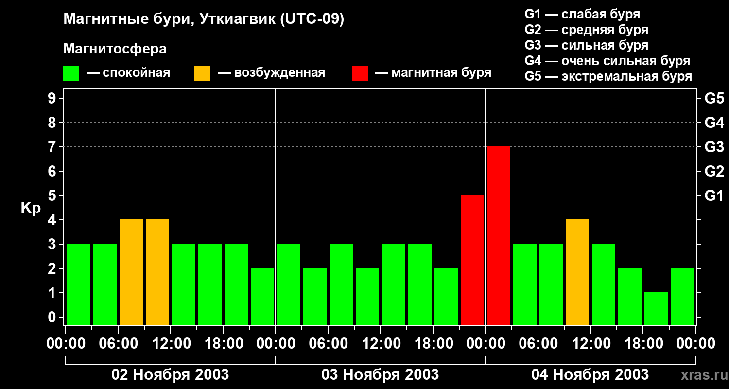 Магнитные бури в Уткиагвике — 4 ноября 2003 года