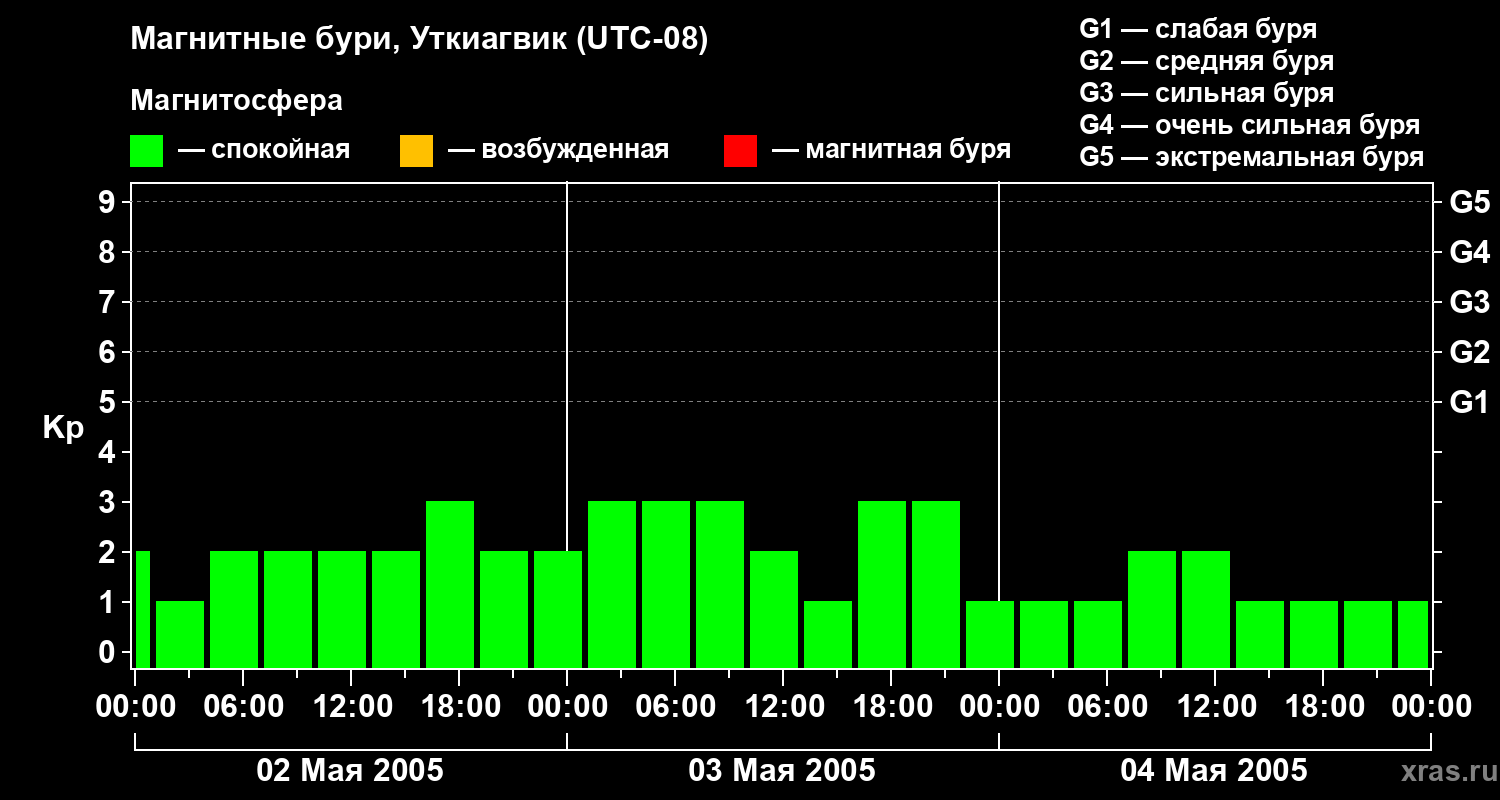 Магнитные бури в Уткиагвике — 4 мая 2005 года