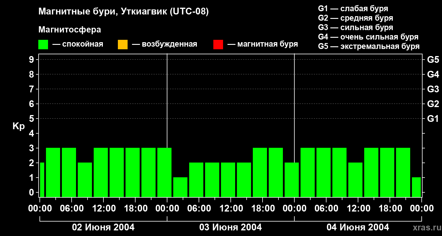 Магнитные бури в Уткиагвике 4 июня 2004 года
