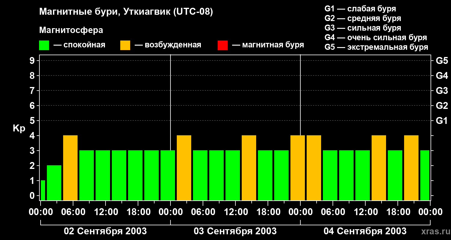 Магнитные бури в Уткиагвике — 4 сентября 2003 года