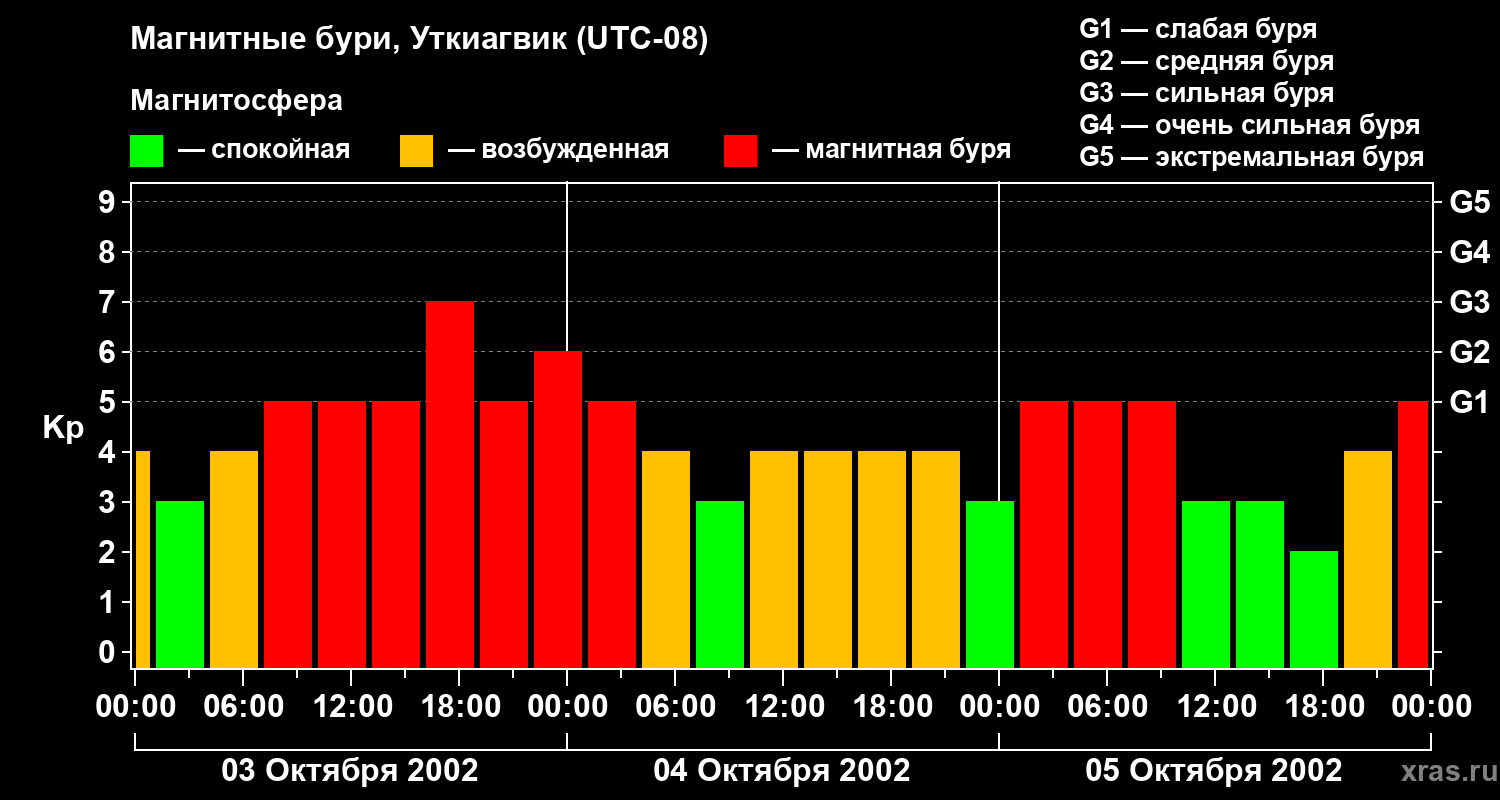 Магнитные бури в Уткиагвике — 5 октября 2002 года