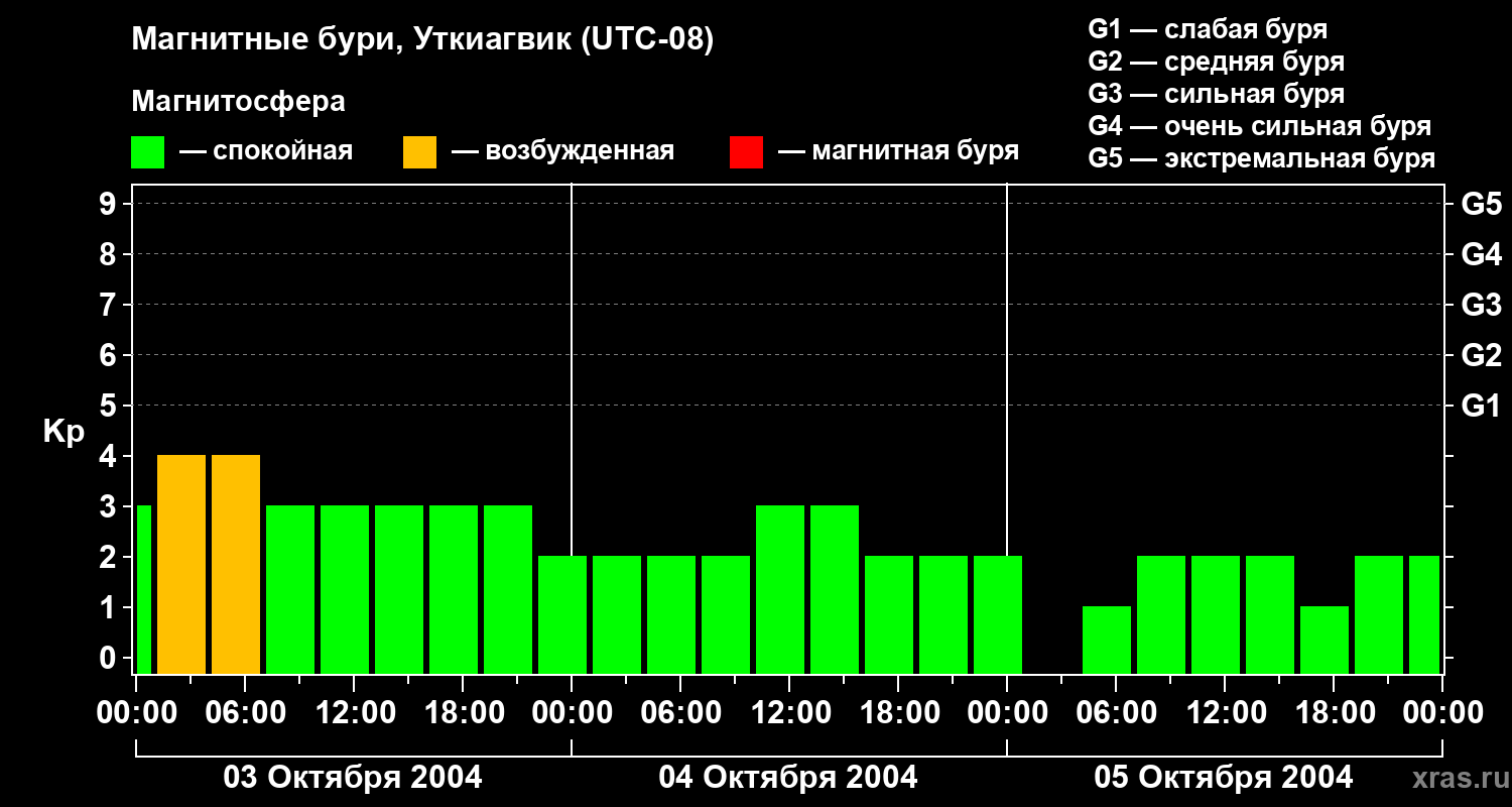 Магнитные бури в Уткиагвике — 5 октября 2004 года