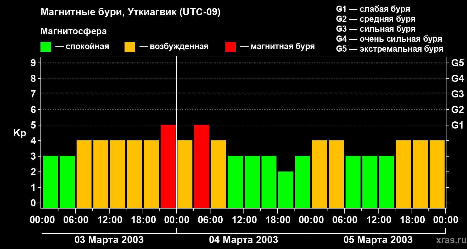 Магнитные бури в Уткиагвике — 5 марта 2003 года