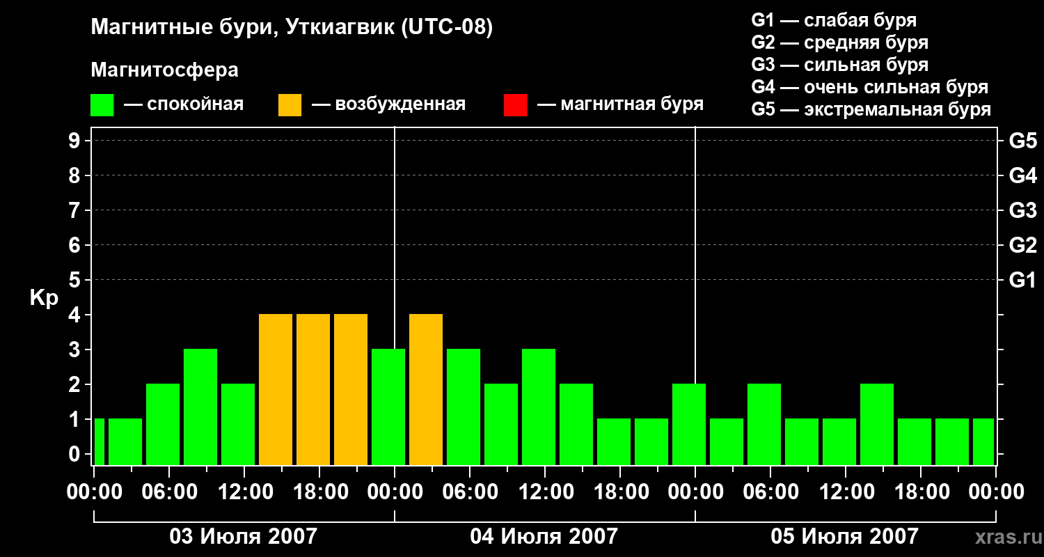 Магнитные бури в Уткиагвике — 5 июля 2007 года