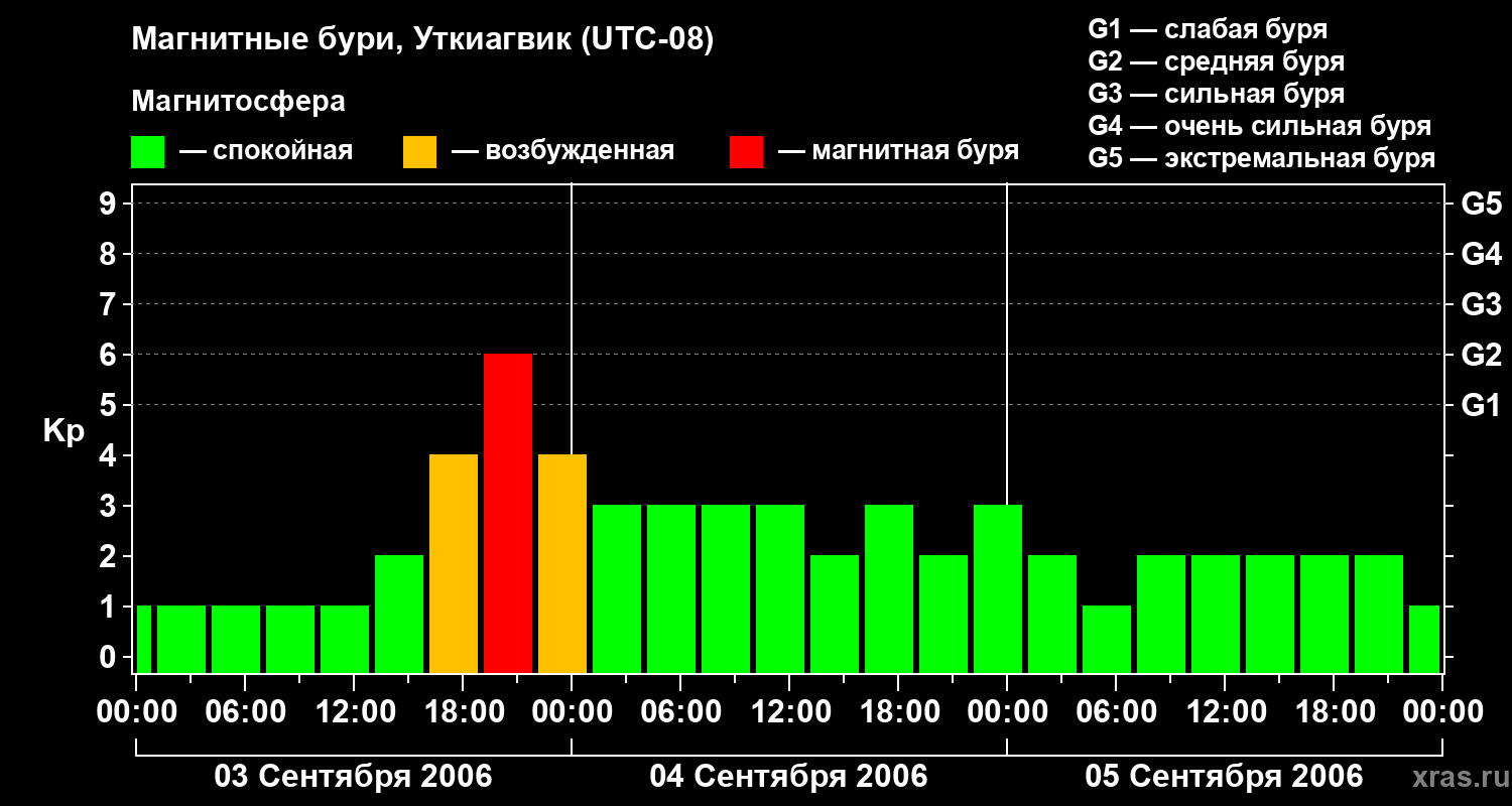 Магнитные бури в Уткиагвике — 5 сентября 2006 года