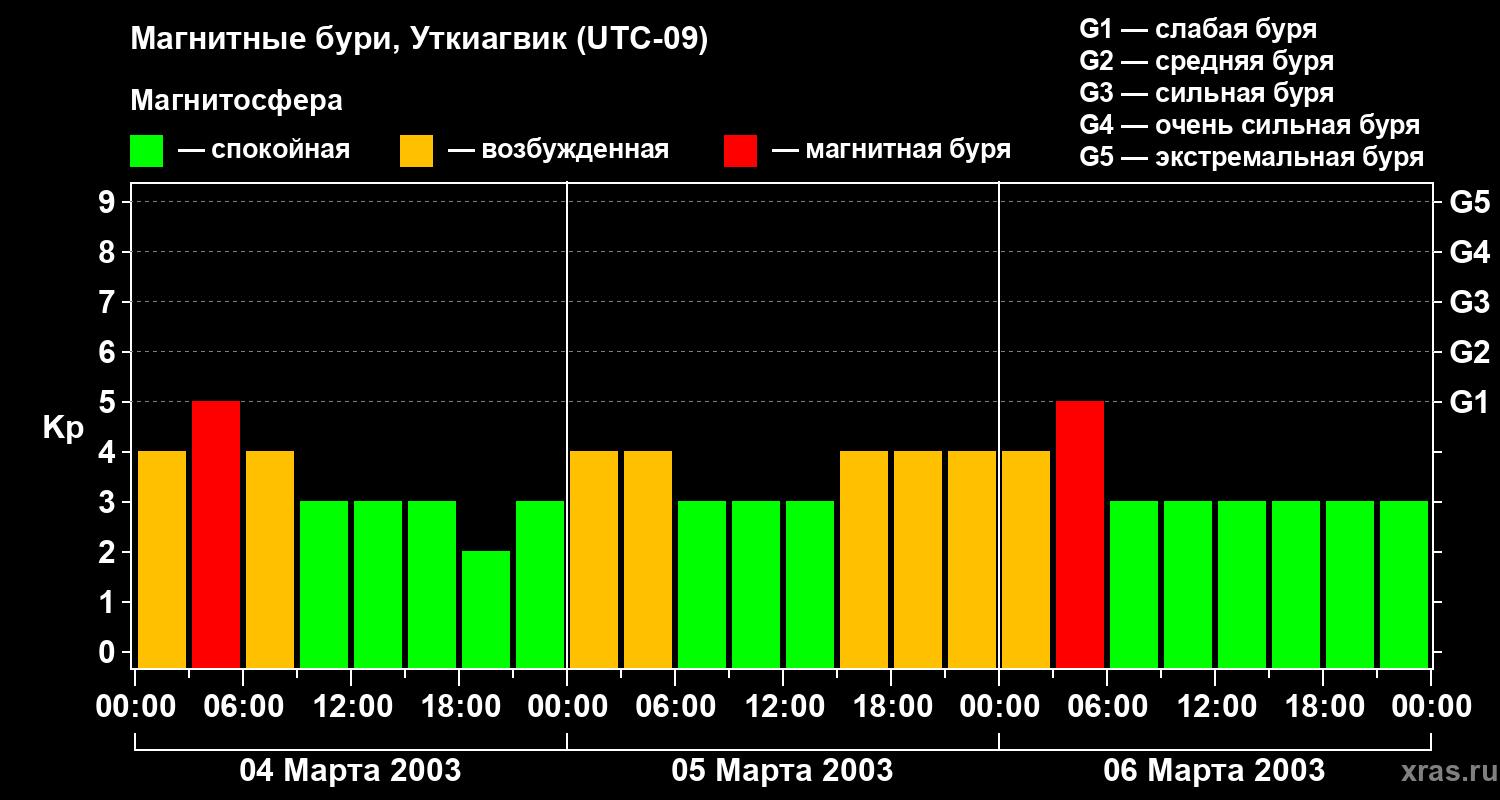 Магнитные бури в Уткиагвике — 6 марта 2003 года
