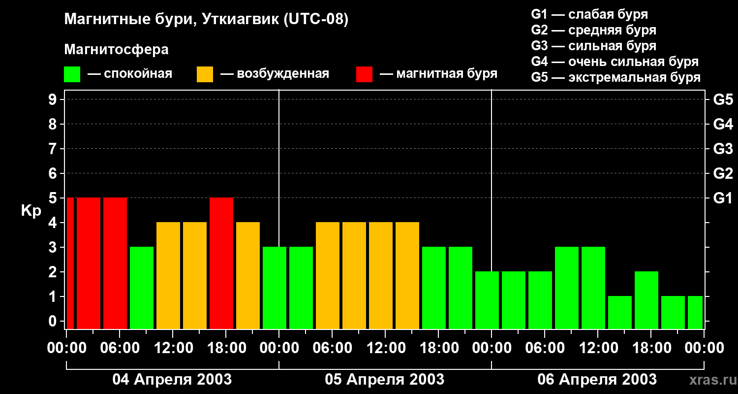 Магнитные бури в Уткиагвике в апреле 2003 года