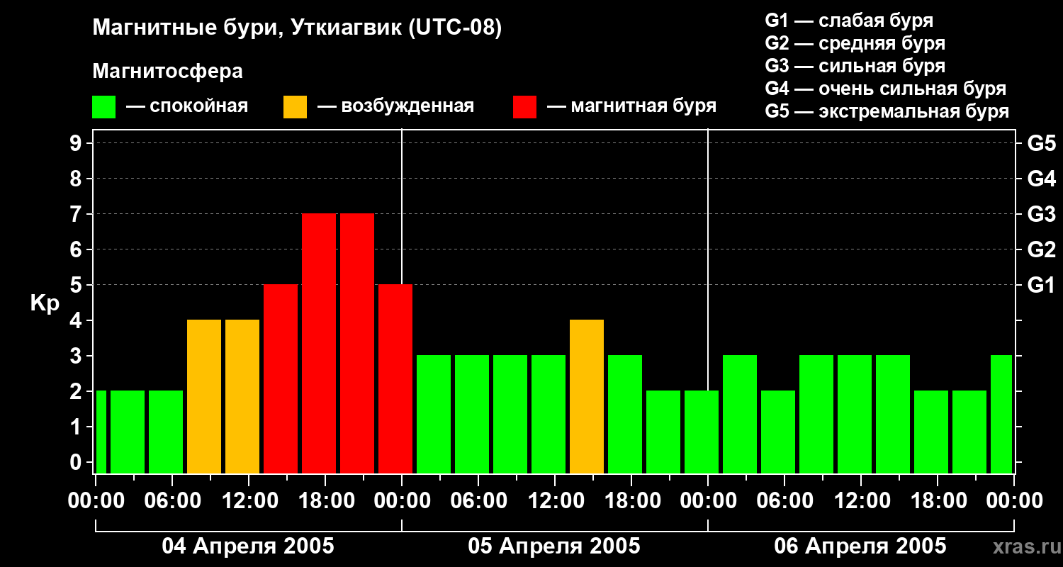 Магнитные бури в Уткиагвике в апреле 2005 года