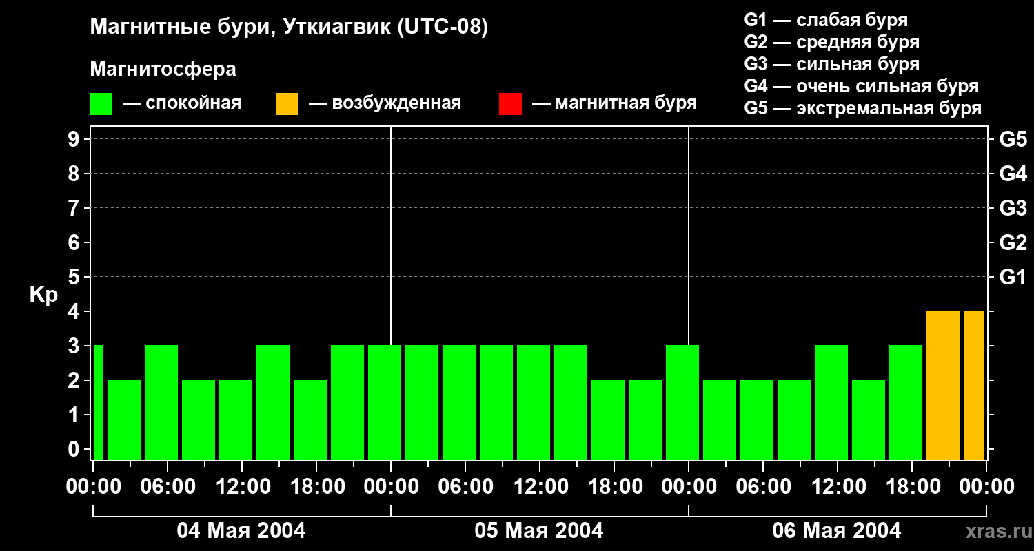 Магнитные бури в Уткиагвике в мае 2004 года