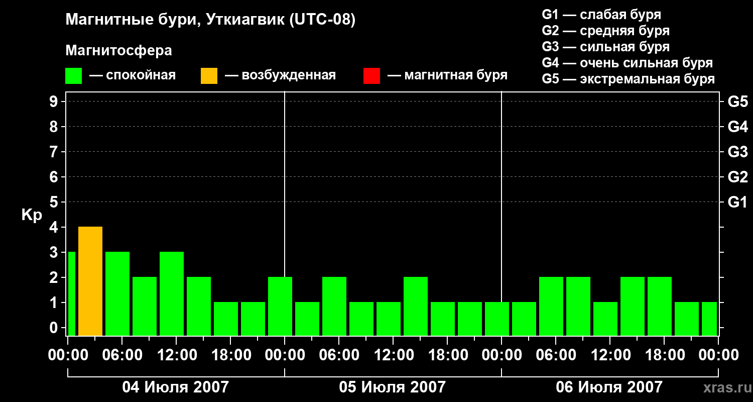 Магнитные бури в Уткиагвике — 6 июля 2007 года