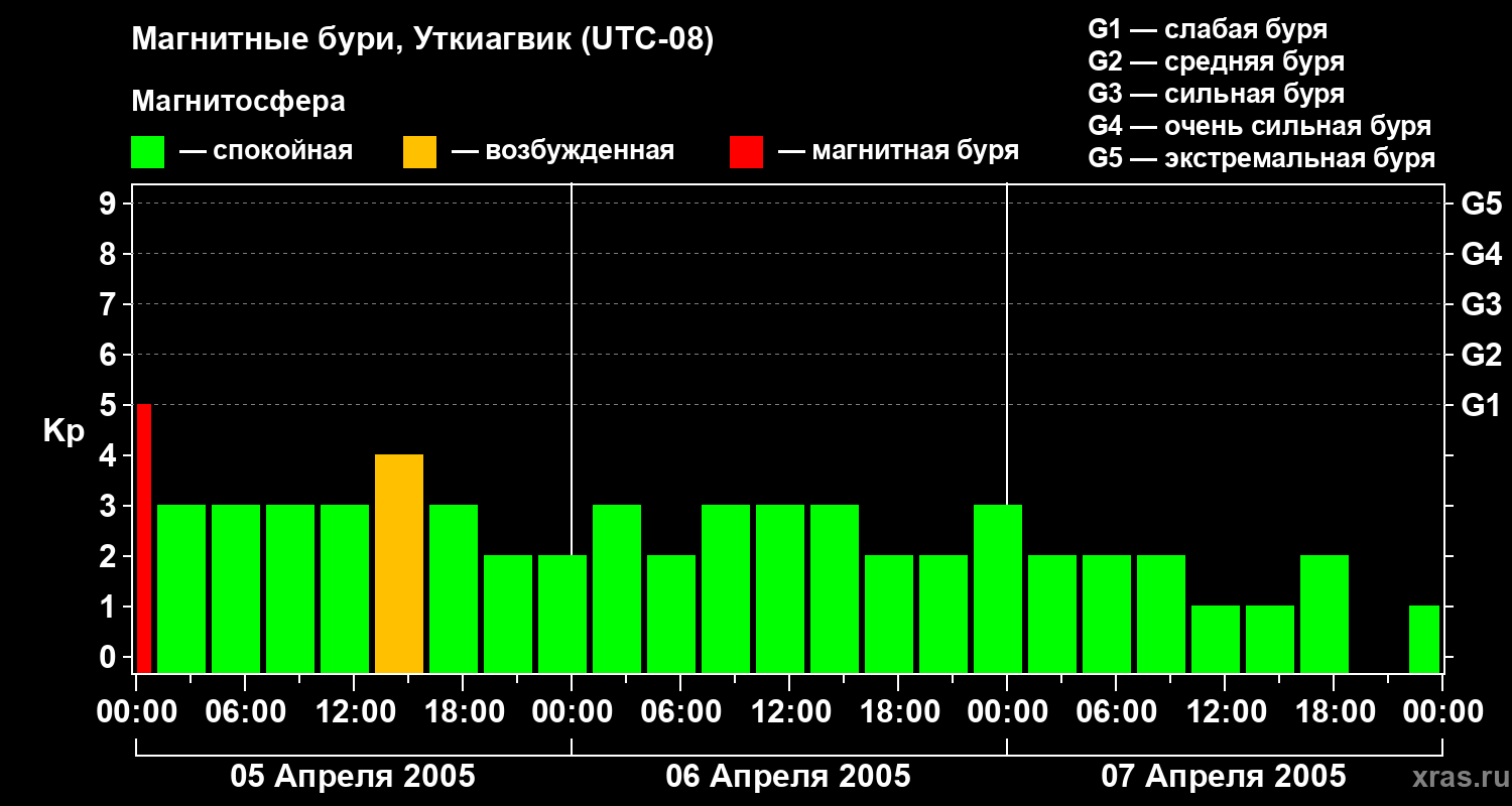 Магнитные бури в Уткиагвике 7 апреля 2005 года
