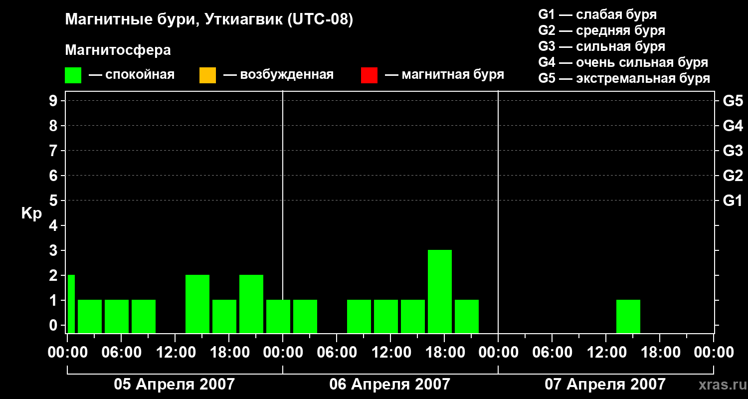 Магнитные бури в Уткиагвике — 7 апреля 2007 года