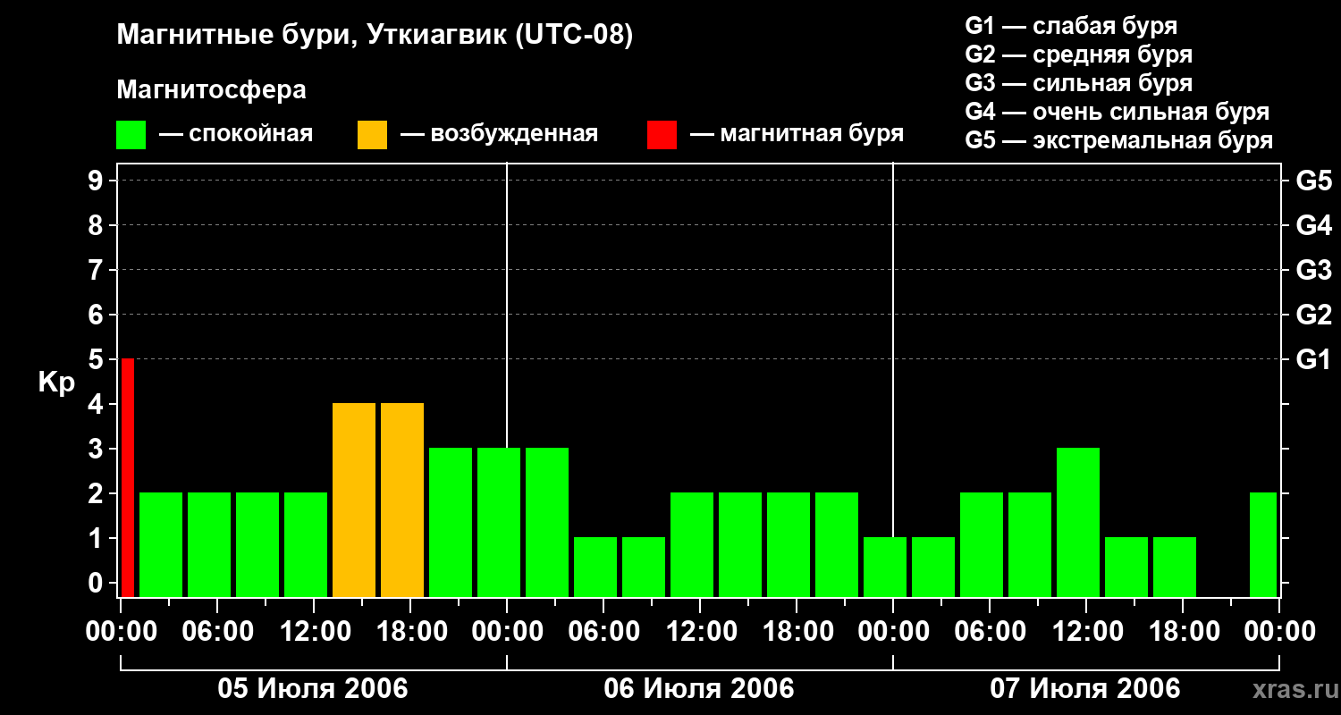 Магнитные бури в Уткиагвике — 7 июля 2006 года