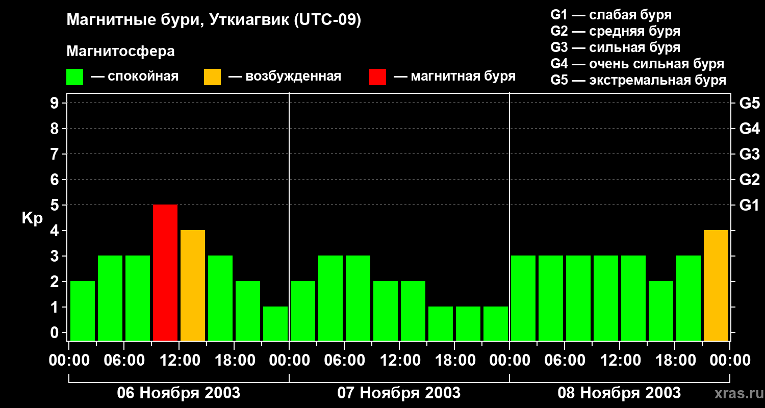 Магнитные бури в Уткиагвике — 8 ноября 2003 года