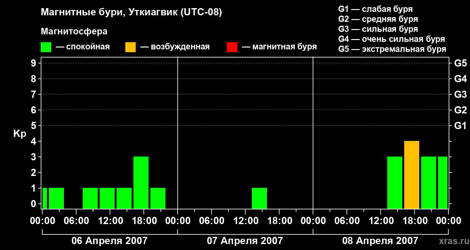 Магнитные бури в Уткиагвике — 8 апреля 2007 года