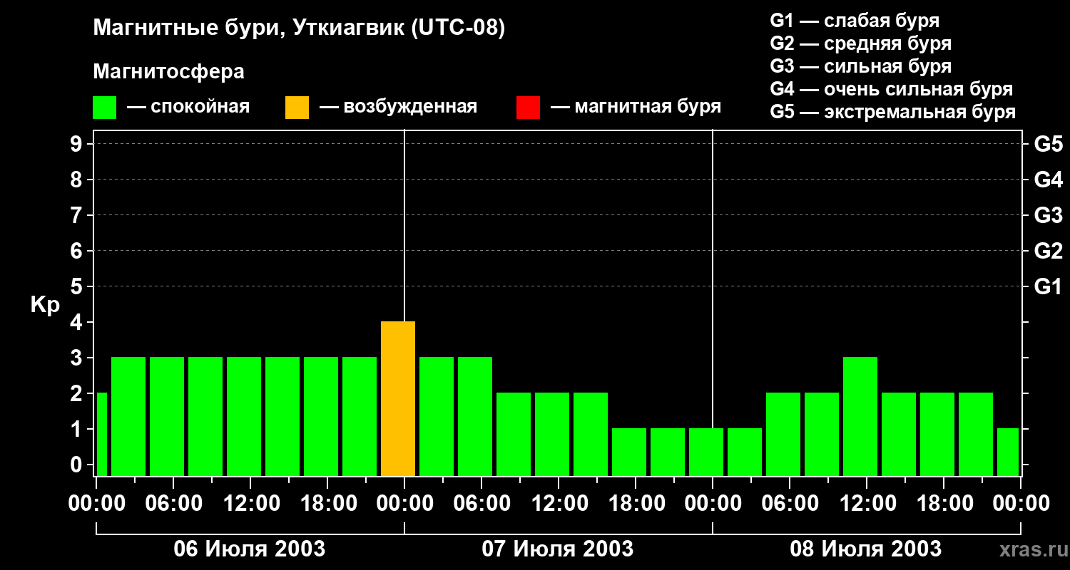 Магнитные бури в Уткиагвике — 8 июля 2003 года