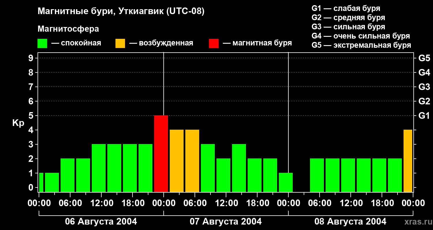 Магнитные бури в Уткиагвике — 8 августа 2004 года