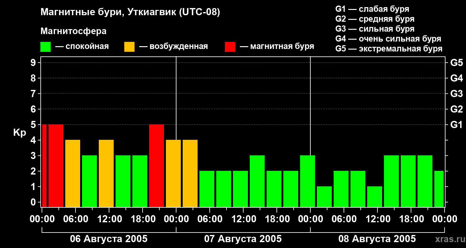 Магнитные бури в Уткиагвике — 8 августа 2005 года