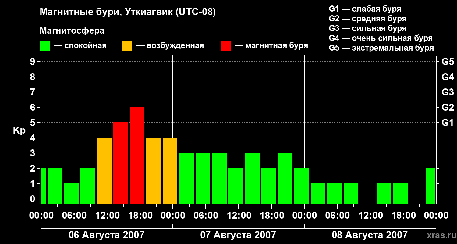 Магнитные бури в Уткиагвике — 8 августа 2007 года