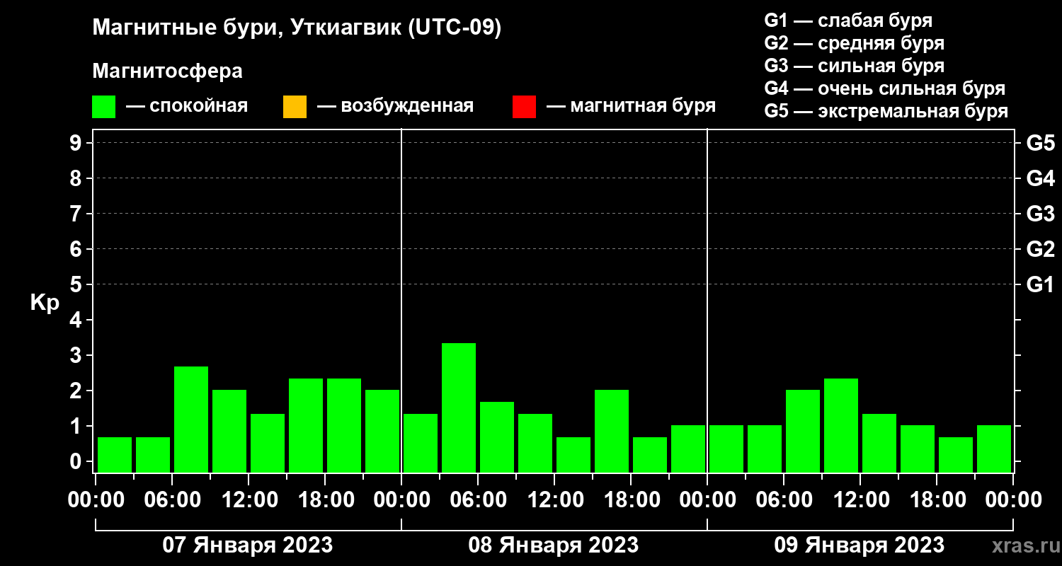 Магнитные бури в Уткиагвике 9 января 2023 года