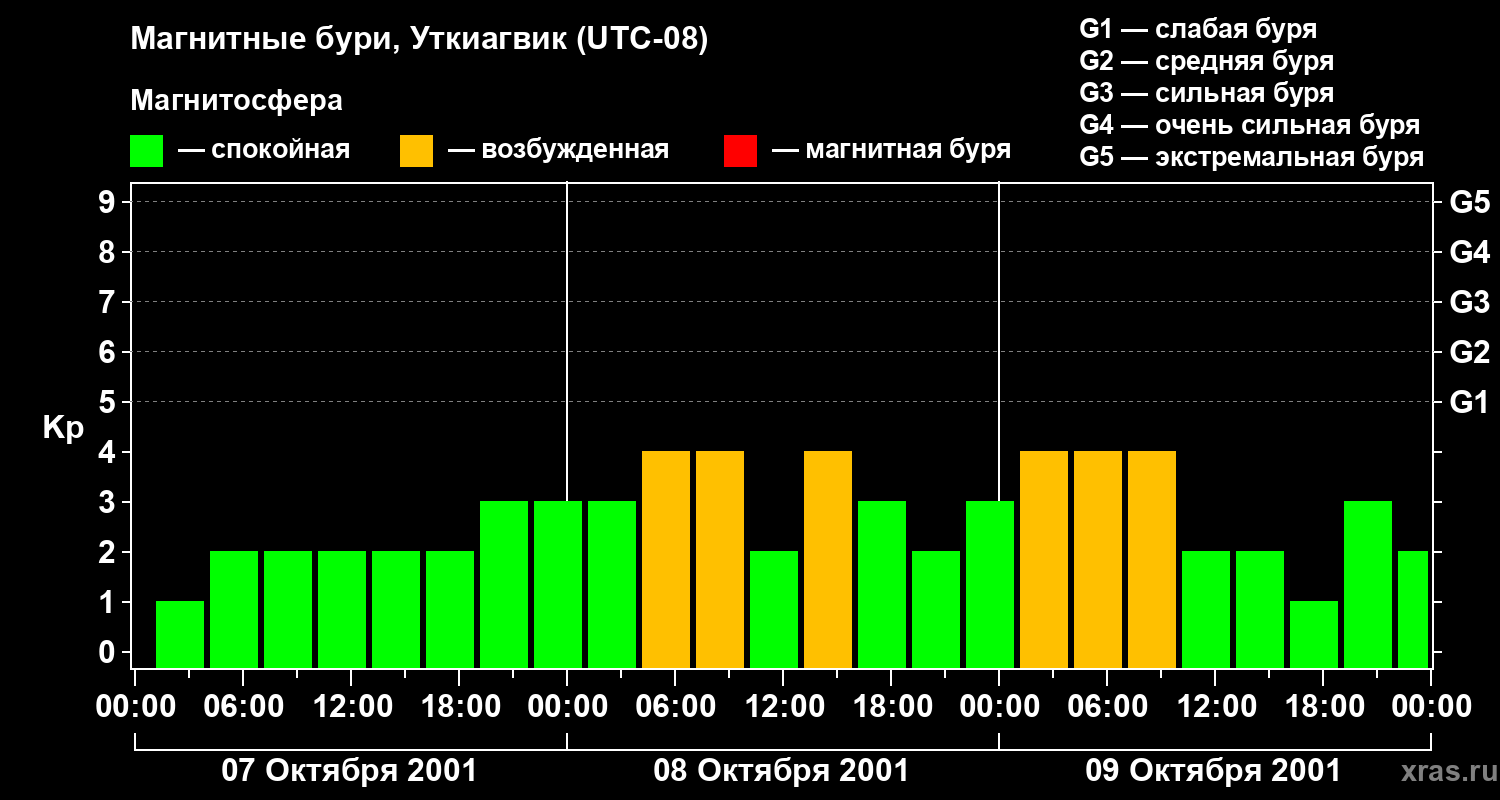 Магнитные бури в Уткиагвике — 9 октября 2001 года