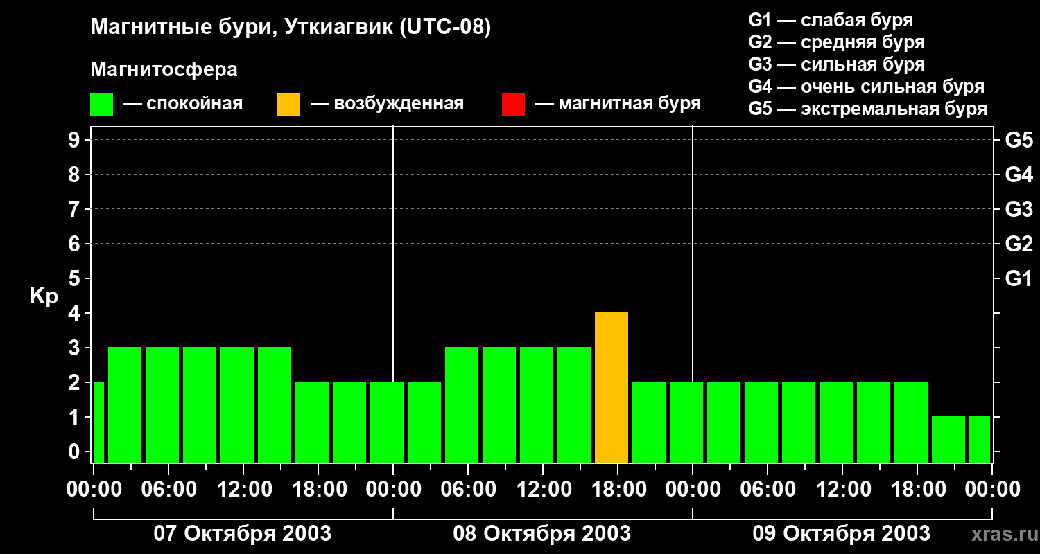 Магнитные бури в Уткиагвике — 9 октября 2003 года