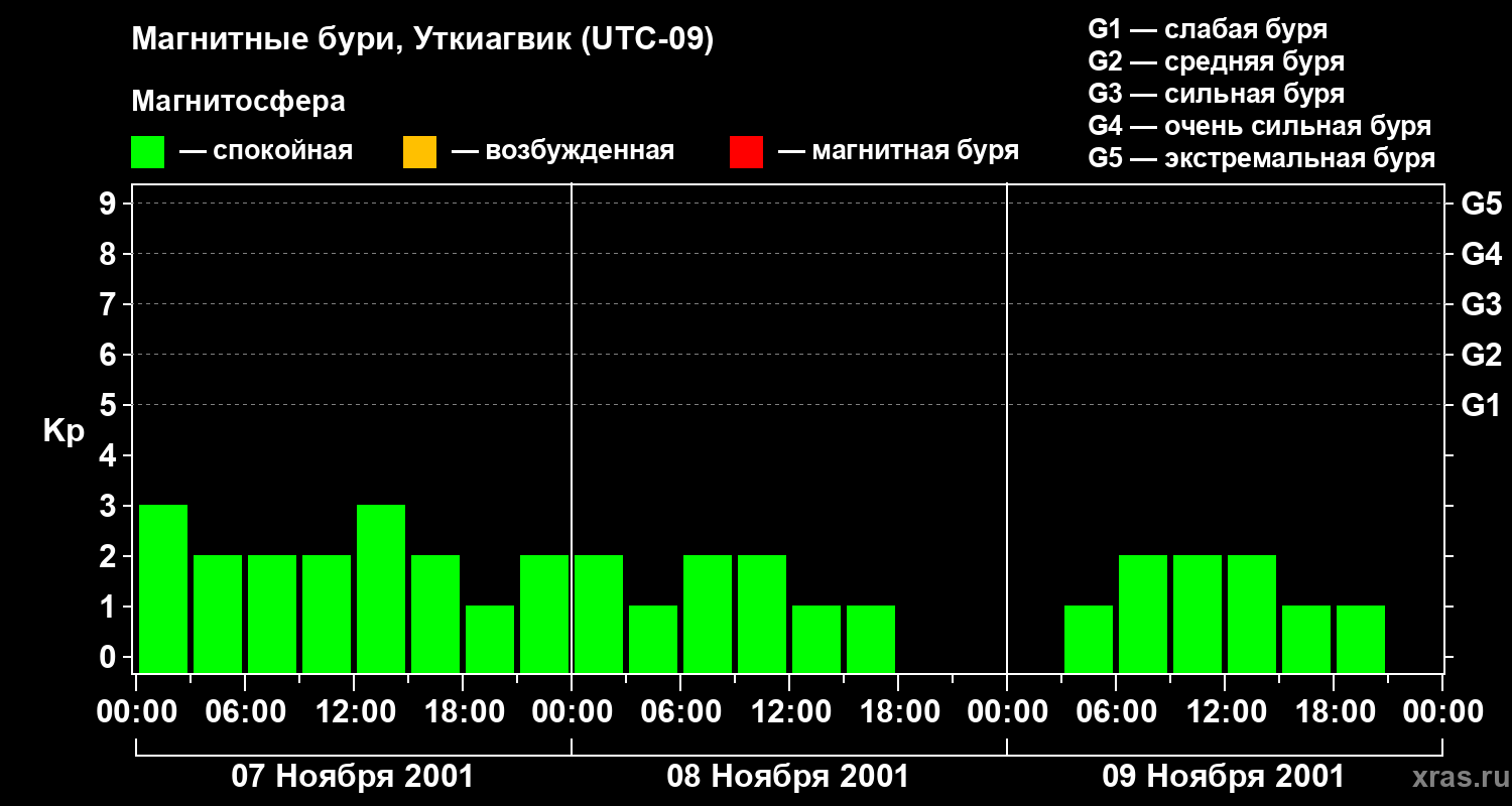 Магнитные бури в Уткиагвике — 9 ноября 2001 года