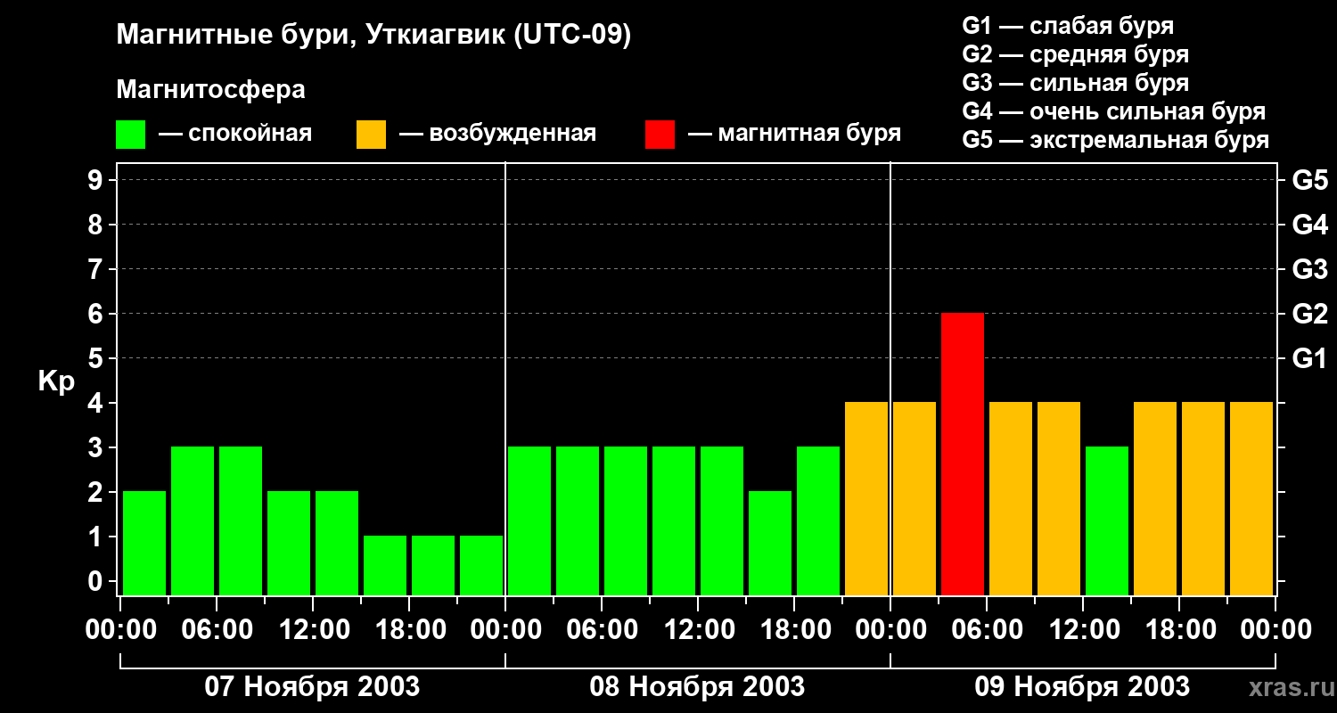 Магнитные бури в Уткиагвике — 9 ноября 2003 года