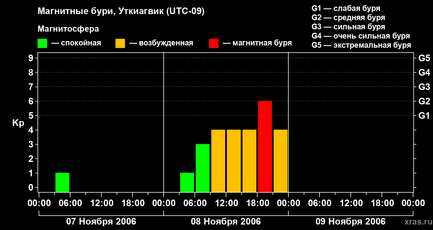 Магнитные бури в Уткиагвике — 9 ноября 2006 года