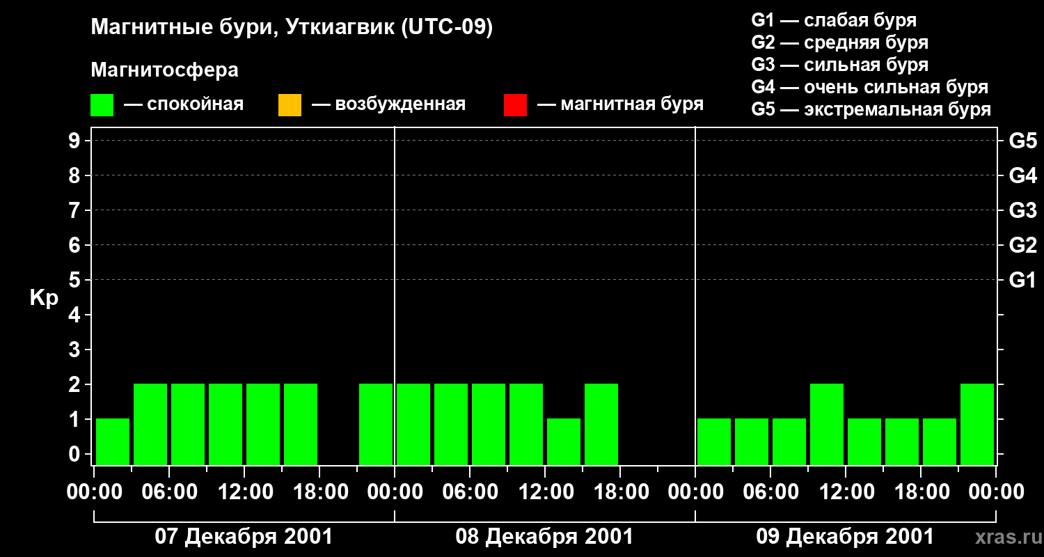 Магнитные бури в Уткиагвике — 9 декабря 2001 года
