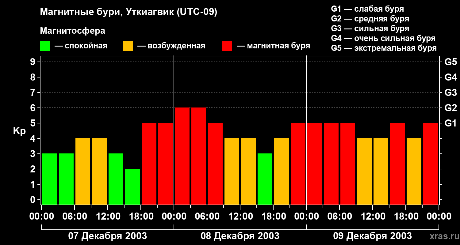 Магнитные бури в Уткиагвике — 9 декабря 2003 года