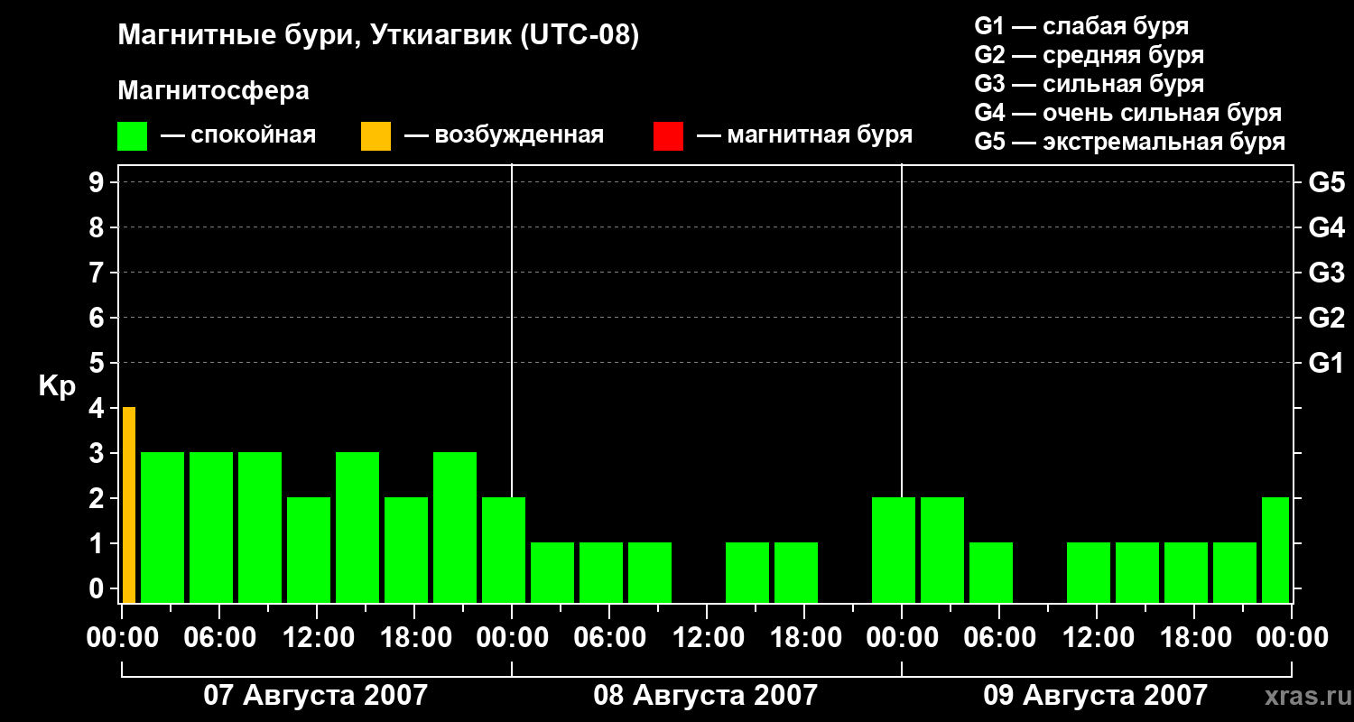 Магнитные бури в Уткиагвике — 9 августа 2007 года
