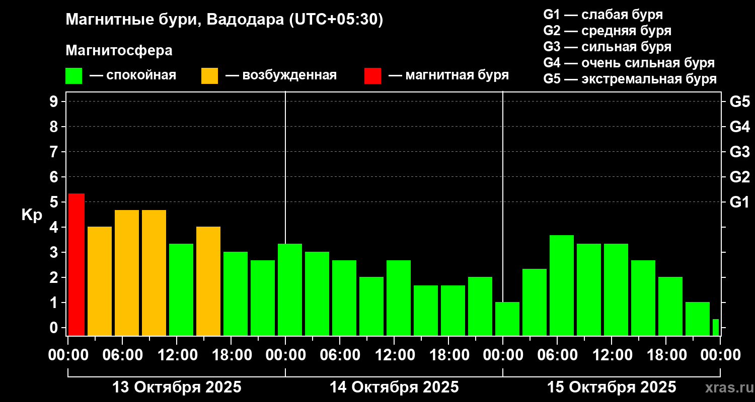 Магнитные бури в Вадодаре — 15 октября 2025 года