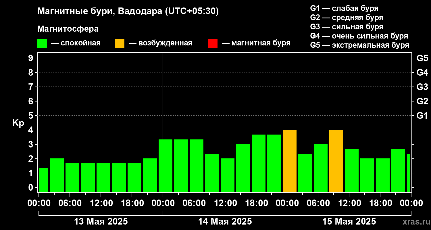 Магнитные бури в Вадодаре — 15 мая 2025 года