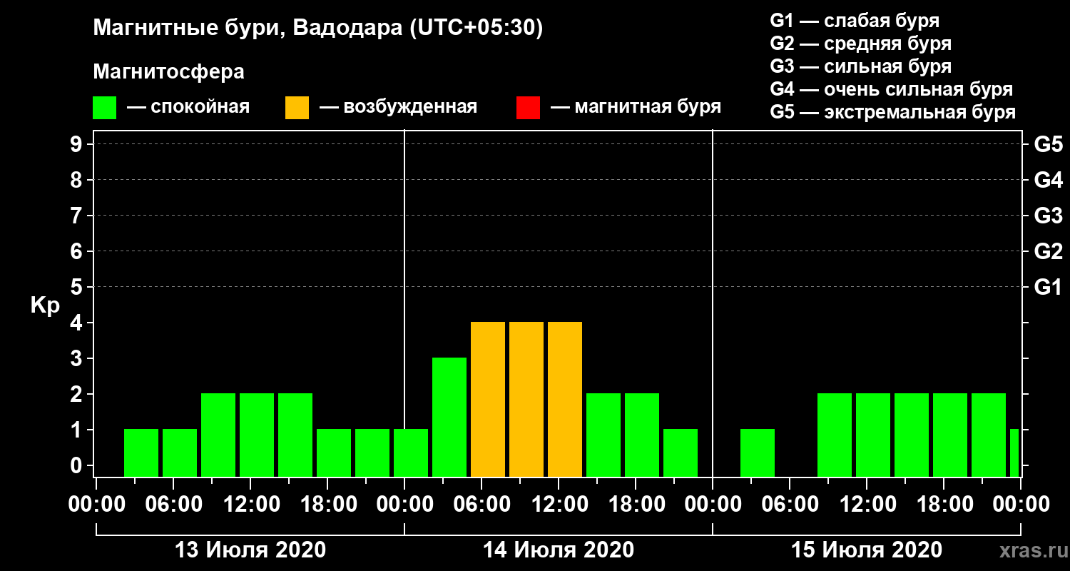 Магнитные бури в Вадодаре — 15 июля 2020 года