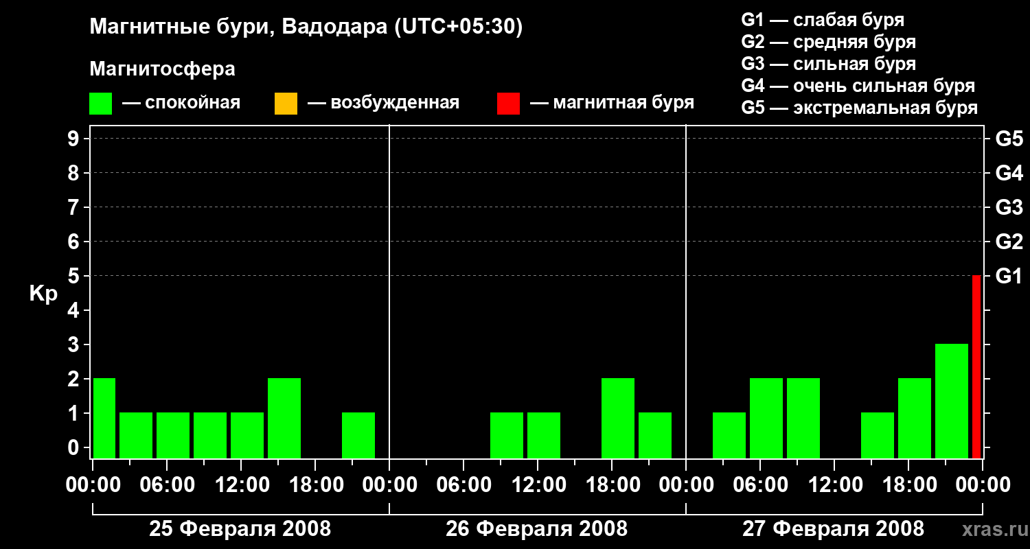 Магнитные бури в Вадодаре — 27 февраля 2008 года