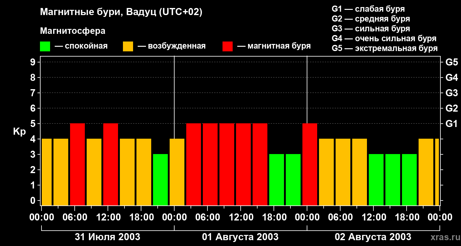 Магнитные бури в Вадуце — 2 августа 2003 года