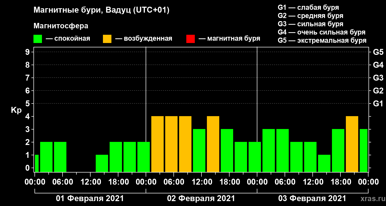 Магнитные бури в Вадуце — 3 февраля 2021 года