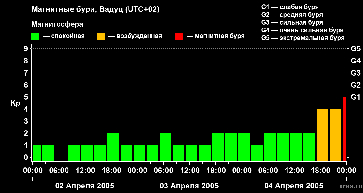Магнитные бури в Вадуце — 4 апреля 2005 года
