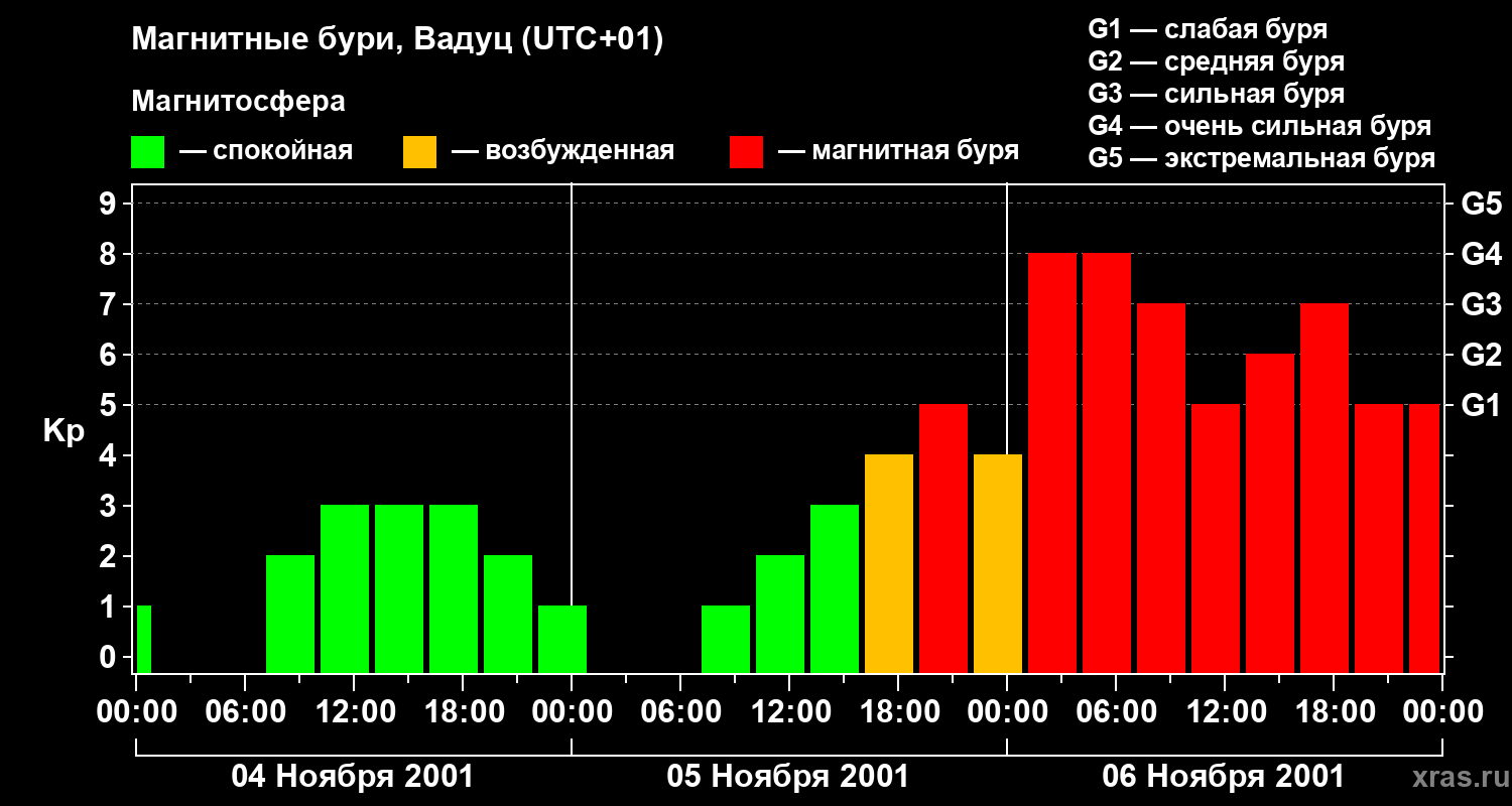 Магнитные бури в Вадуце — 6 ноября 2001 года