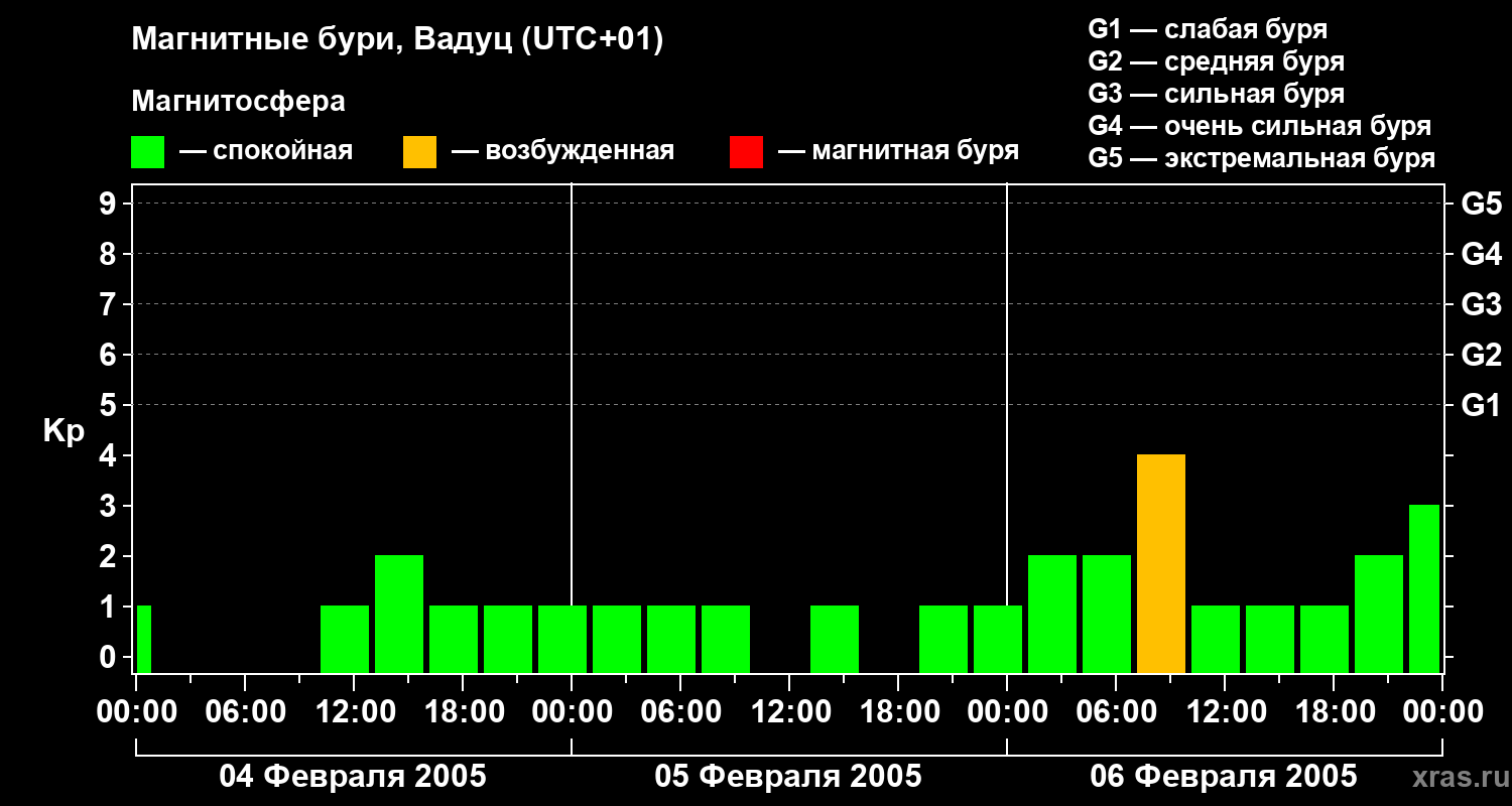Магнитные бури в Вадуце — 6 февраля 2005 года