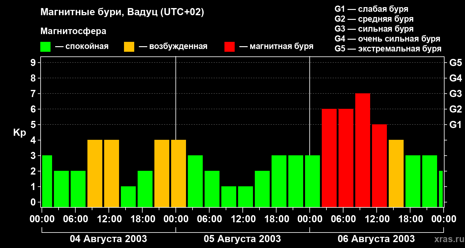 Магнитные бури в Вадуце — 6 августа 2003 года