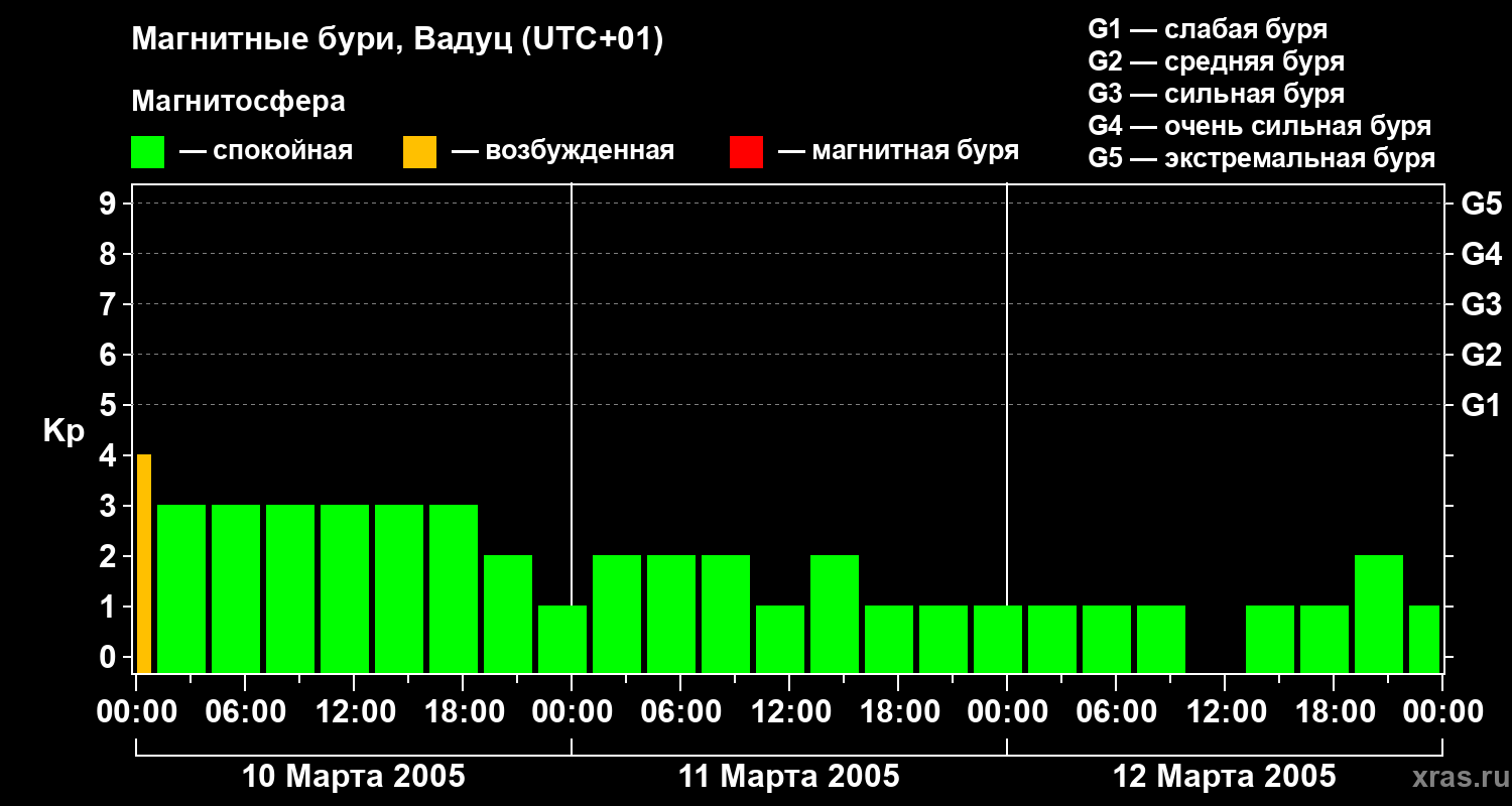 Магнитные бури в Вадуце — 12 марта 2005 года