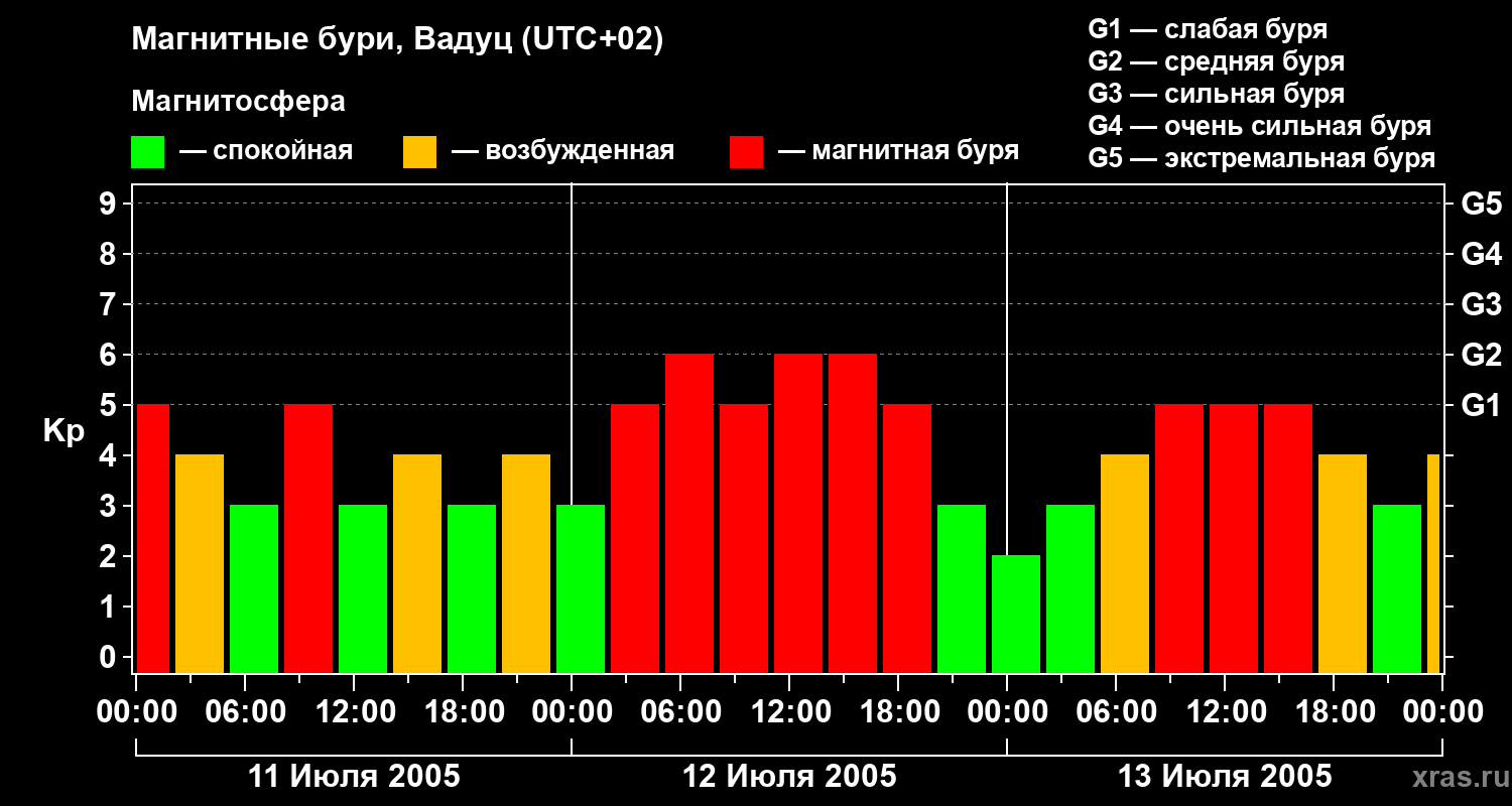 Магнитные бури в Вадуце — 13 июля 2005 года