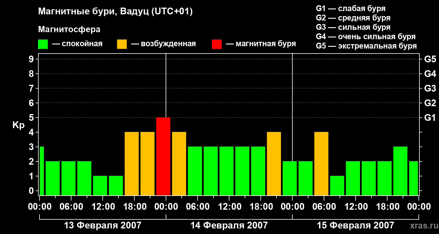 Магнитные бури в Вадуце — 15 февраля 2007 года