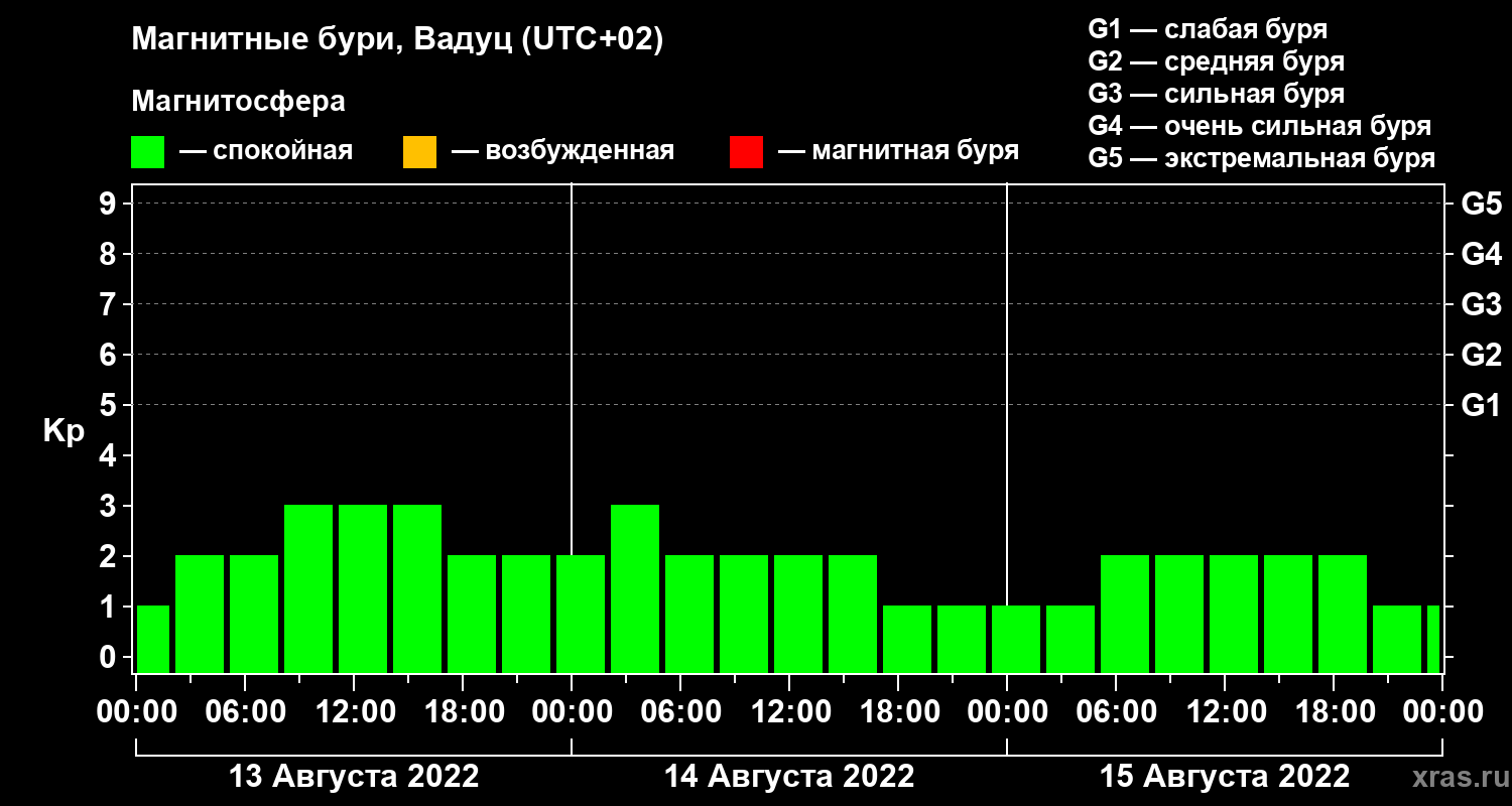 Магнитные бури в Вадуце 15 августа 2022 года