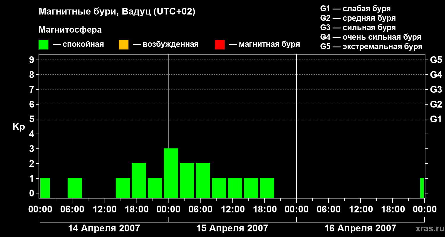 Магнитные бури в Вадуце — 16 апреля 2007 года