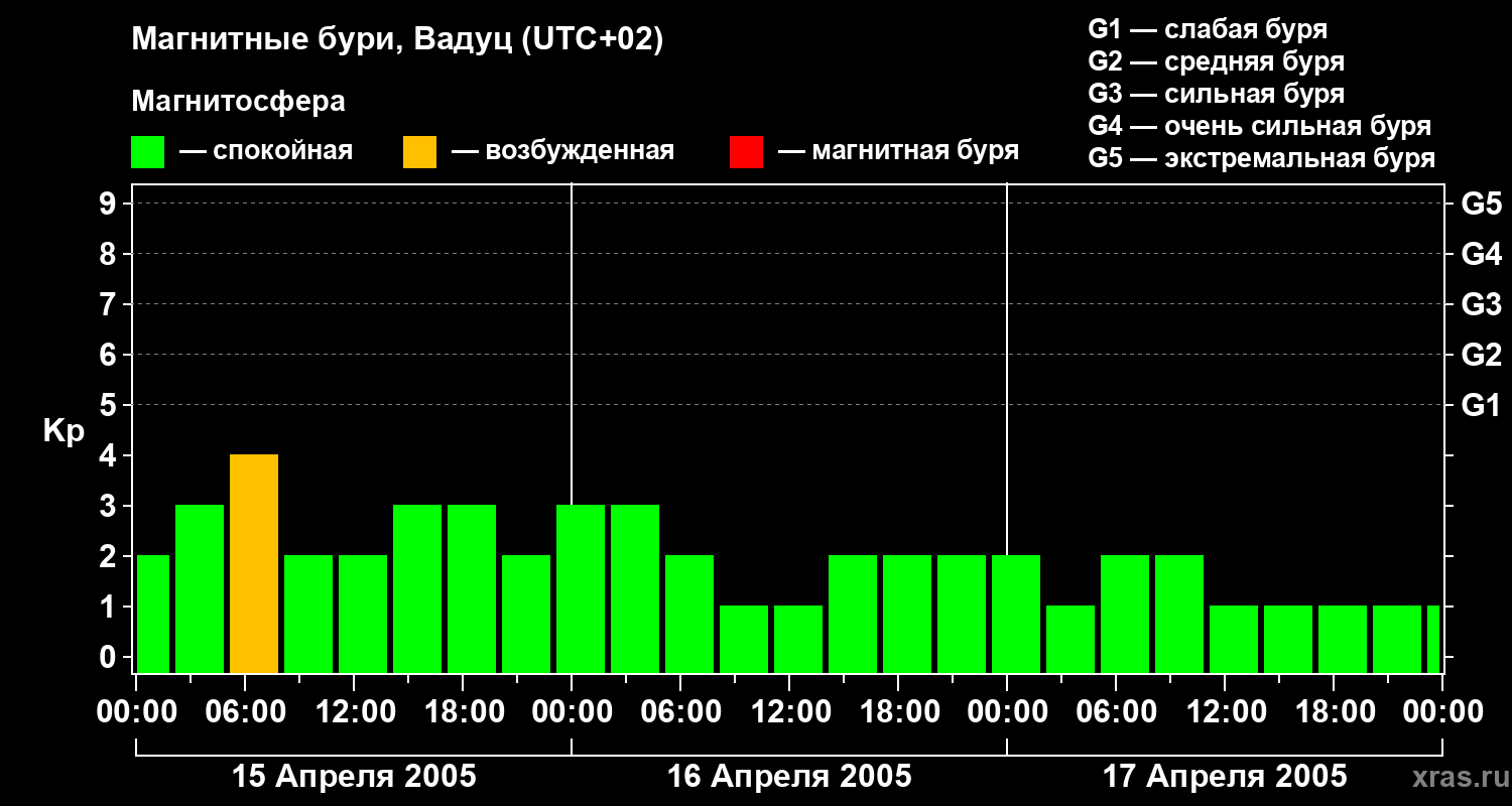 Магнитные бури в Вадуце — 17 апреля 2005 года