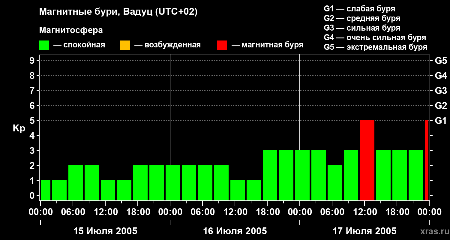 Магнитные бури в Вадуце — 17 июля 2005 года